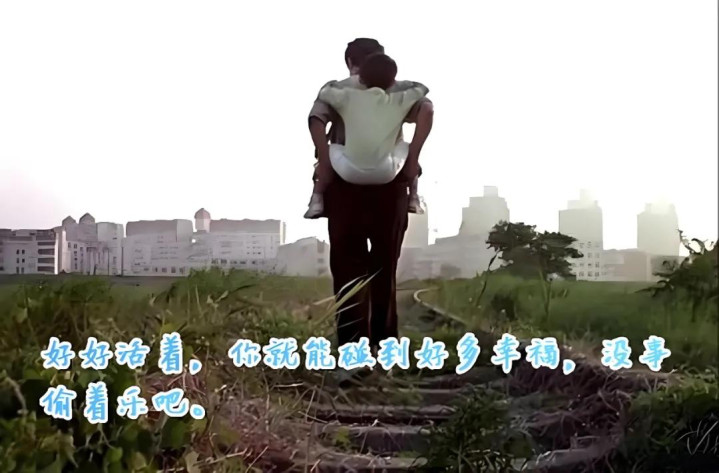 大民说:“只要你好好活着,就能碰到好多好多的幸福,我的儿子啊,你就没事偷着乐吧!”电影就此结束。